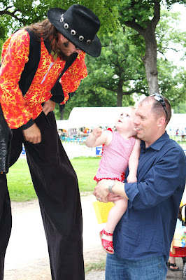 It was hilarious to watch her tumble over the obstable course and climb this huge ladder tower thing (huge for her size) while all the older kids waited behind her S_L_O_W self. And then to see her hair flying up in the air as she flew down the slide was just tooooooo funny. We were in tears watching her. She has a fear of NOTHING!!